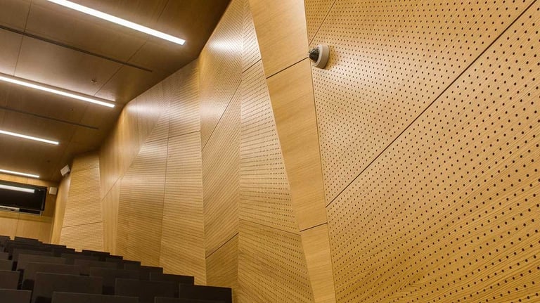 Explore ceiling solutions that combine aesthetics with sound insulation and fire resistance.